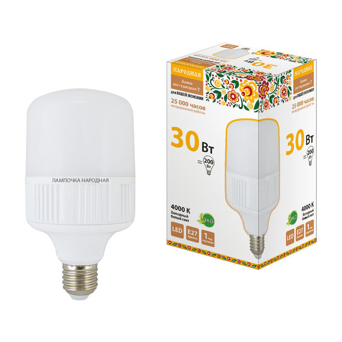 Лампа диодная T30 30Вт Е27 4000К 2400Лм TDM Народная (50)