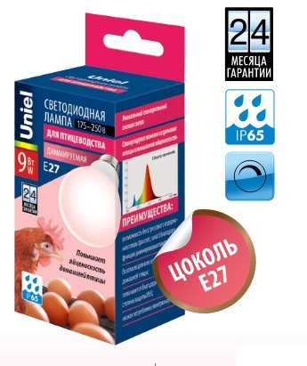 Лампа диодная A60 9Вт Е27 450Лм IP65 Uniel для птиц диммируемая (10)