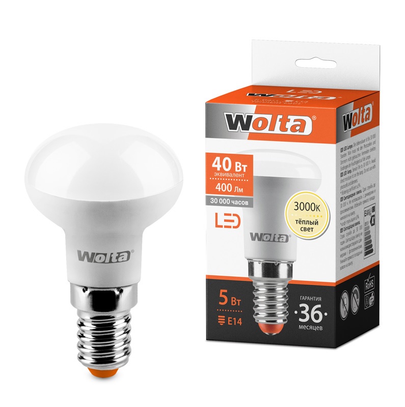 Лампа диодная R39 5Вт Е14 3000К 400Лм Wolta (10)