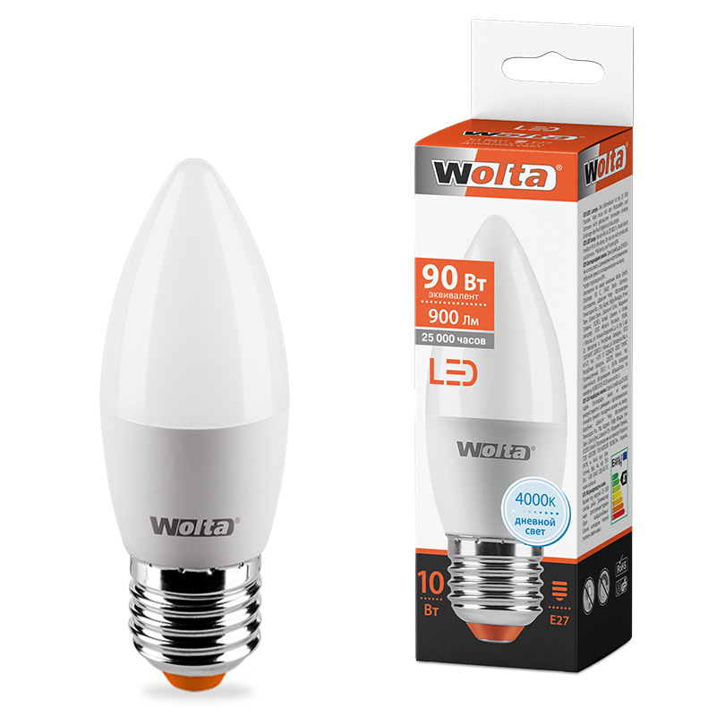 Лампа диодная свеча 10Вт Е27 4000К 900Лм Wolta (50) #