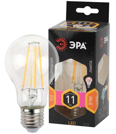 Лампа филамент A60 11Вт Е27 2700К 1023Лм Эра (10/100/1200)