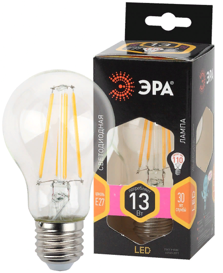 Лампа филамент A60 13Вт Е27 2700К 1200Лм Эра (10/100/1200)