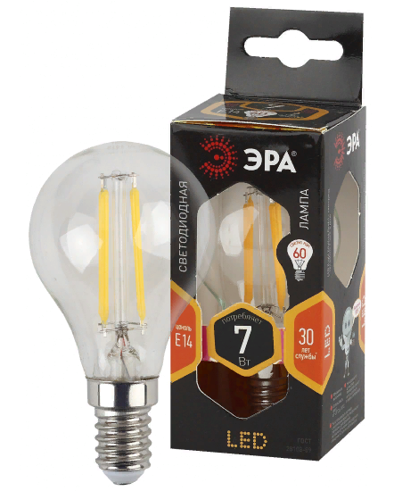 Набор из 3 филаментных ламп ЭРА F-LED P45-7W-827-E14 с цоколем Е14. Нитевидные светодиоды напоминают, как выглядели ретро лампы. Такие источники света хороши для дизайнерских интерьеров в стиле лофт, ретро, классика. Их выбирают те, кто хочет быстро и недорого преобразить пространство. Свет этих ламп тёплый и мягкий. Создают в помещении уютную атмосферу для общения и отдыха. Потребляемая мощность 7 Вт. Светят ярко, как лампа накаливания 55 Вт. Отличаются повышенным световым потоком почти 700 Лм.