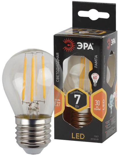 Лампа филамент шар G45 7Вт Е27 2700К 695Лм Эра (10/100/3000)