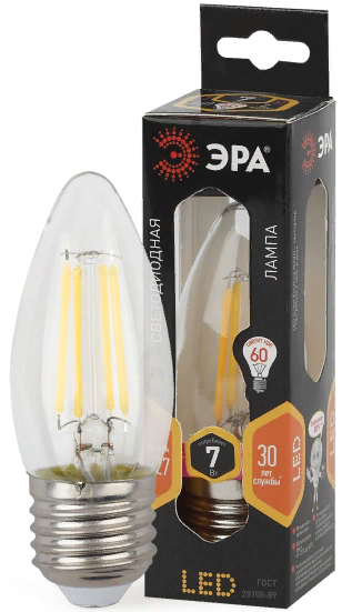 Лампа филамент свеча 7Вт Е27 2700К 695Лм Эра (10/100/2800)