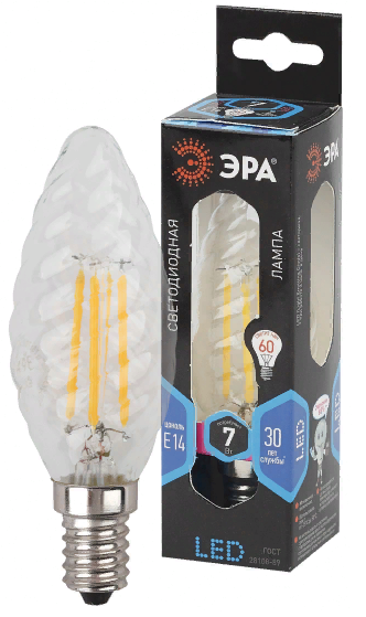 Лампа филамент свеча витая 7Вт Е14 4000К 730Лм Эра (10/100/2800)
