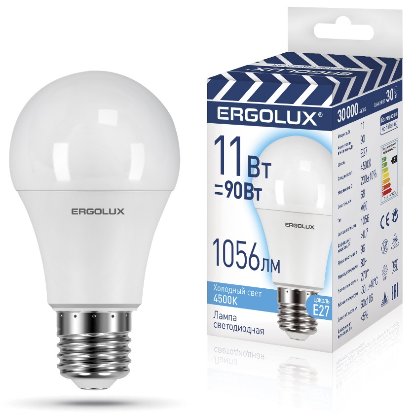Лампа диодная A60 11Вт Е27 4500К 1056Лм Ergolux (10/100)