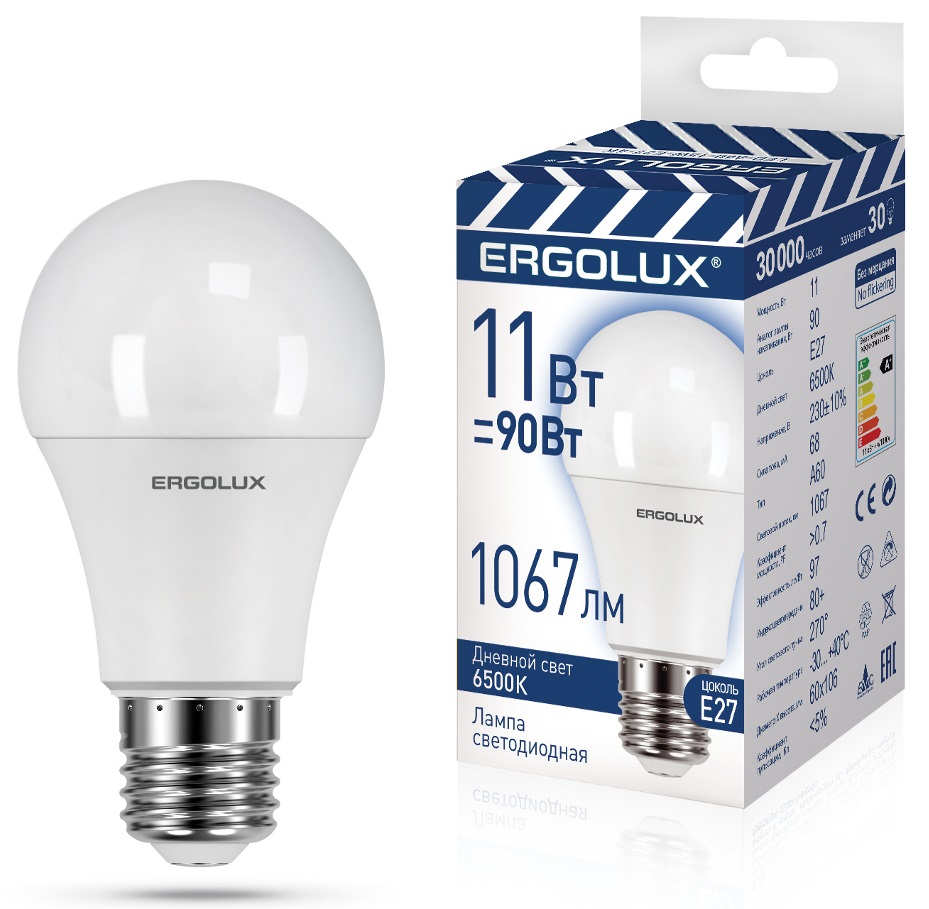Лампа диодная A60 11Вт Е27 6500К 1067Лм Ergolux ПРОМО (10/100)