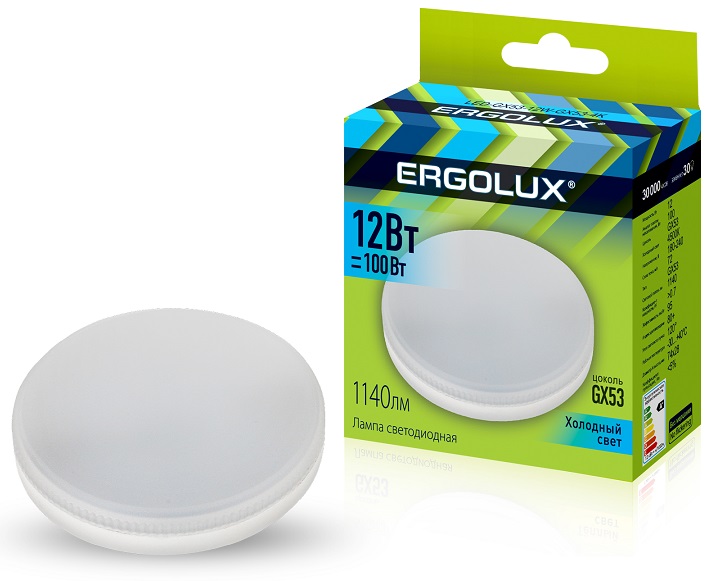 Лампа диодная GX53 12Вт 4500К 1140Лм Ergolux (10/100)