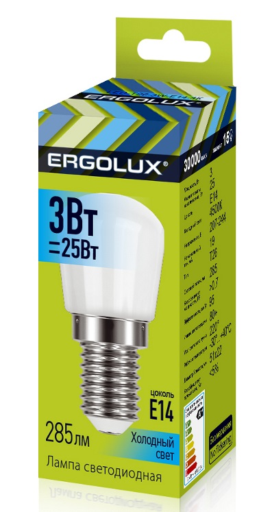 Лампа диодная T26 3Вт Е14 4500К 285Лм Ergolux (10/50/500)