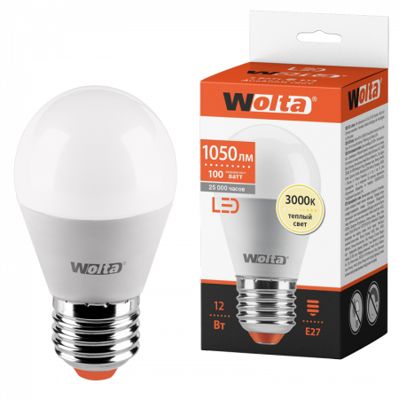 Светодиодная лампа WOLTA 25Y45GL12E27 12Вт 3000K E27
