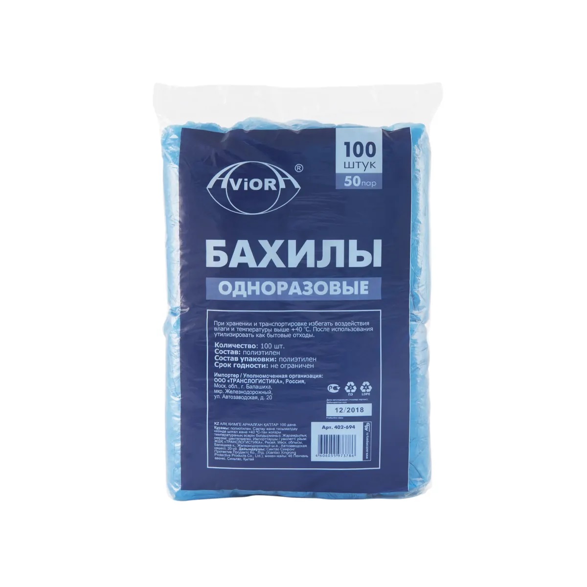 Бахилы одноразовые полиэтиленовые 100шт 15х39см 10мкм Aviora (40)