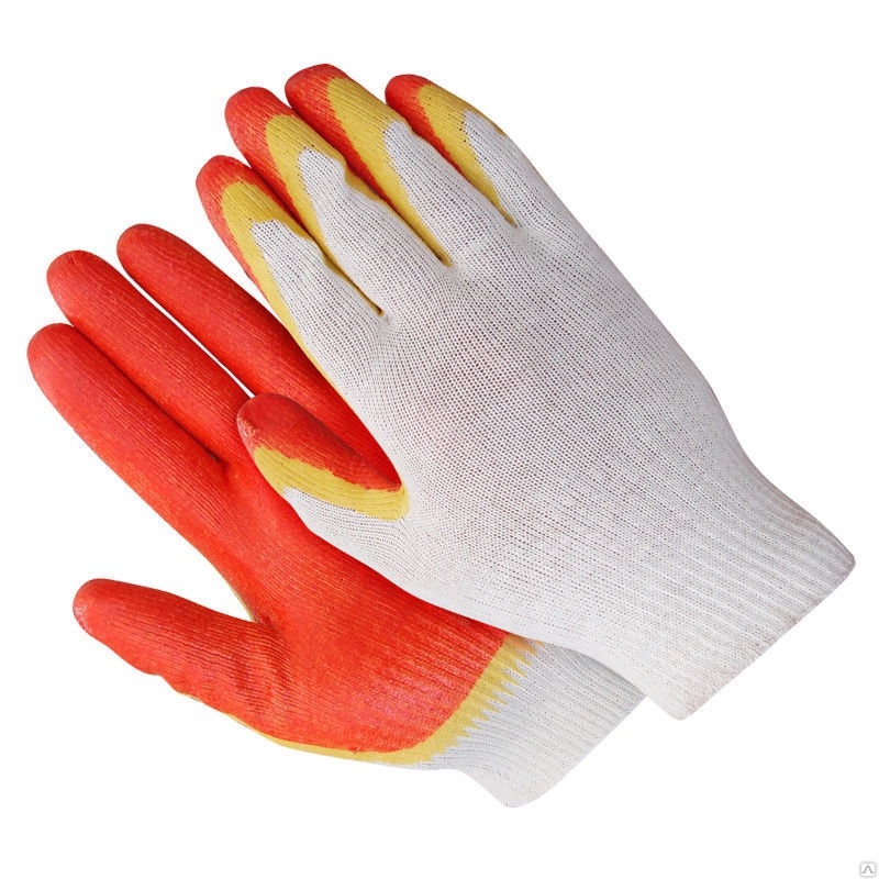 Перчатки х/б облив двойной латекс красные с желтым 10 класс размер 9 (10/200)