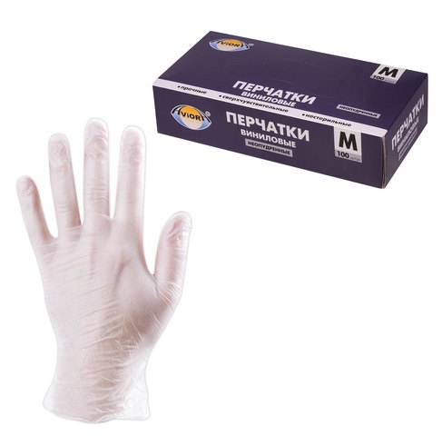 Перчатки винил M 100шт неопудренные белый Aviora (10)