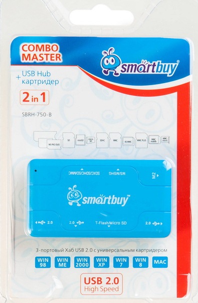 Kартридер + USB- хаб SmartBuy 750-B Combo синий