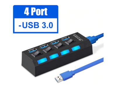 USB- хаб SmartBuy USB 3.0 7304-B 4 порта, выключатели порта с индикацией, черный