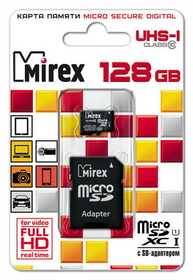 Карта micro-SD Mirex 128GB Class 10 UHS-I U1 + адаптер (SDXC)
