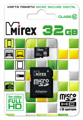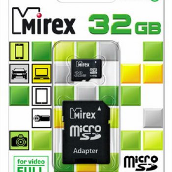 Карта micro-SD Mirex 32GB Class 10 + адаптер (SDHC)