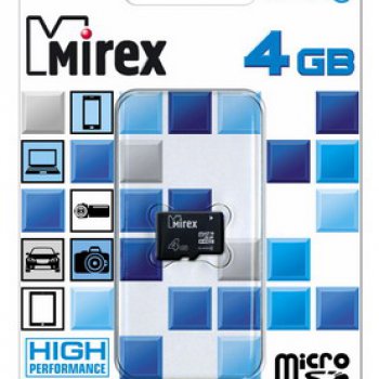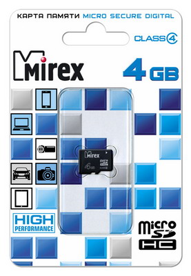 Карта micro-SD Mirex 4GB Class 4 (SDHC) (без адаптера)