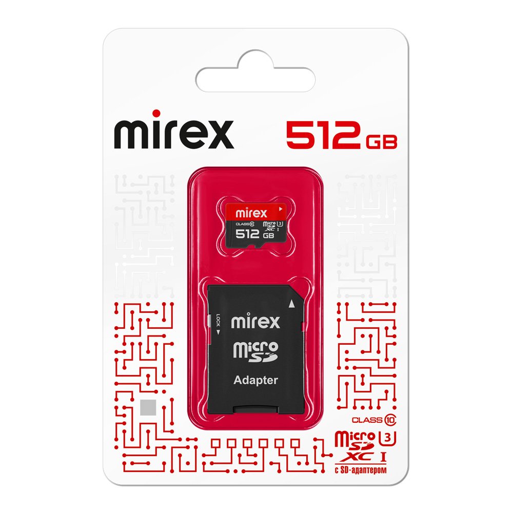 Карта micro-SD Mirex 512GB Class 10 UHS-I U3 + адаптер (SDXC)