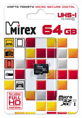 Карта micro-SD Mirex 64GB Class 10 (SDXC) UHS-I (без адаптера)