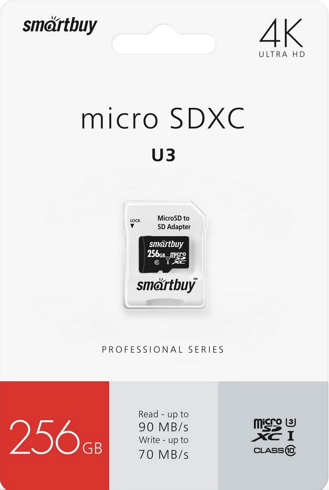 Карта micro-SD SmartBuy 256GB Class 10 PRO U3 R/W:90/70 MB/s + адаптер (SDXC)