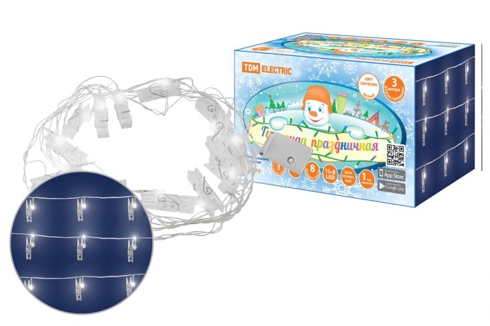 Интернет-магазин «Витрина 59» предлагает купить товар «Гирлянда TDM 15LED белый Прищепки 3м 8 режимов IP20 (36)» по цене: 270.00 руб. Артикул товара - SQ0361-0093. Вы можете оформить заказ через интернет-магазин или по телефону +7 (950) 45-67-67-6. Дополнительную информацию о продаже товаров из каталога «Праздничное освещение, новогодние, сезонные товары» вы можете получить у нашего менеджера. Звоните!