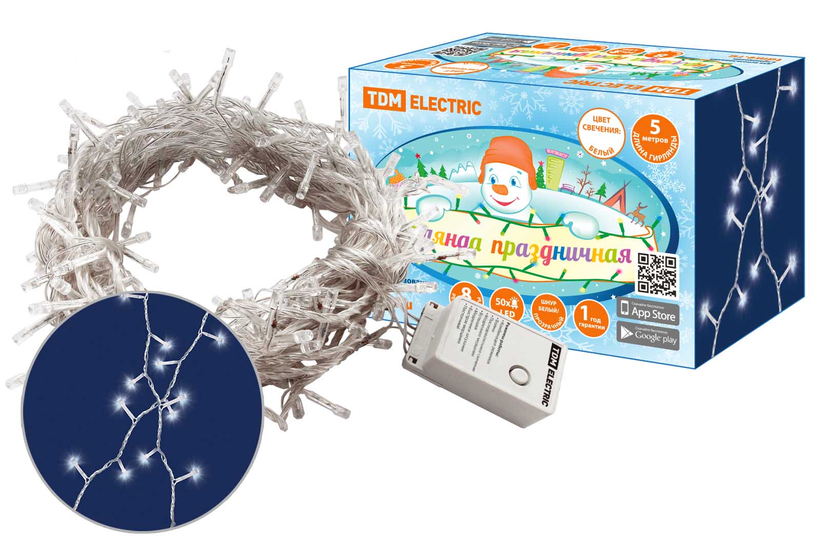 Гирлянда TDM СГ50Б5 50LED белый 5м 8 режимов IP20 (30)
