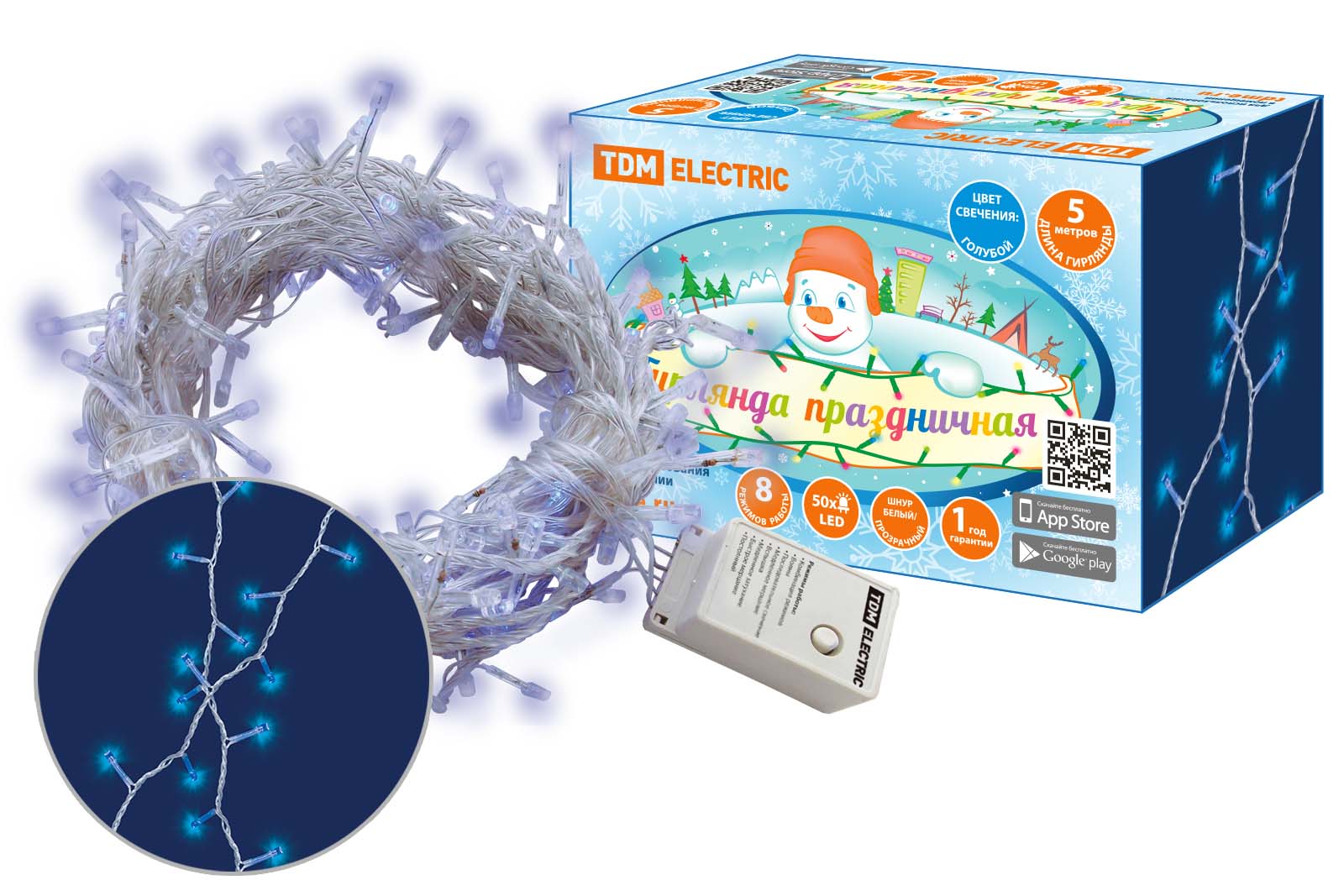 Гирлянда TDM СГ50Б5 50LED синий 5м 8 режимов IP20 (30)