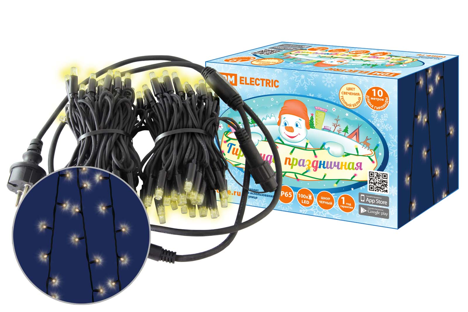 Гирлянда TDM СГУ100Б10 100LED 3000К 10м каучук черный посл.подкл. IP65 (12)