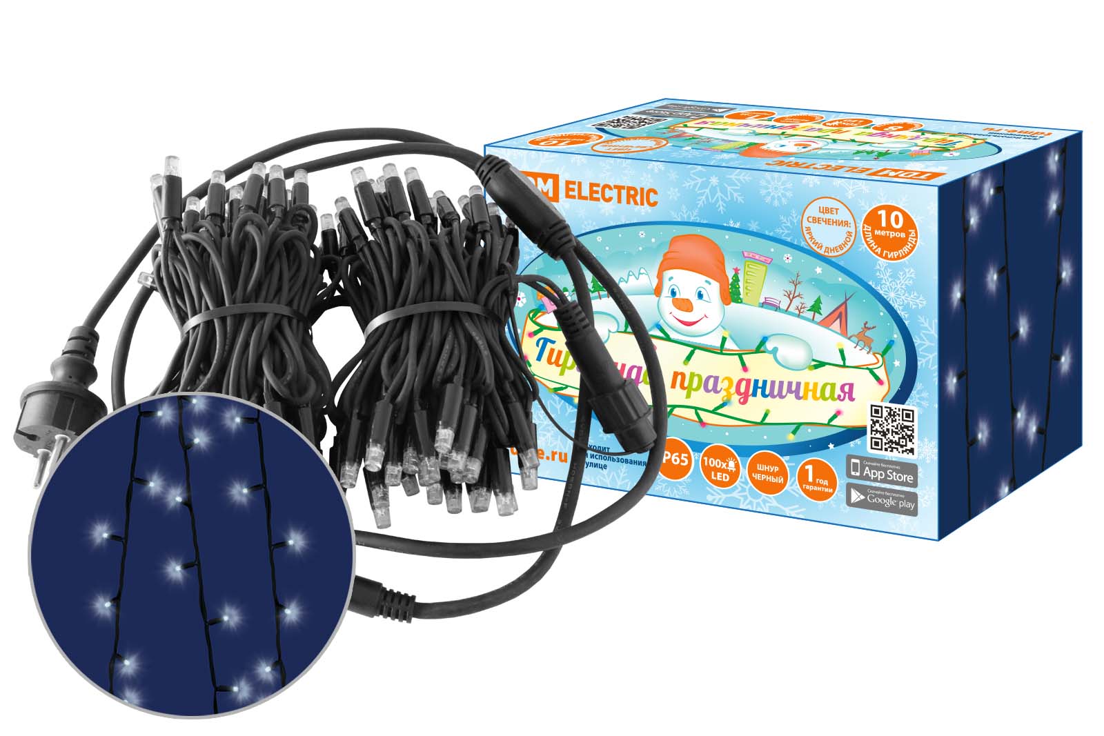 Гирлянда TDM СГУ100Б10 100LED 6500К 10м мерцание каучук черный последовательное подключение IP65 (12)