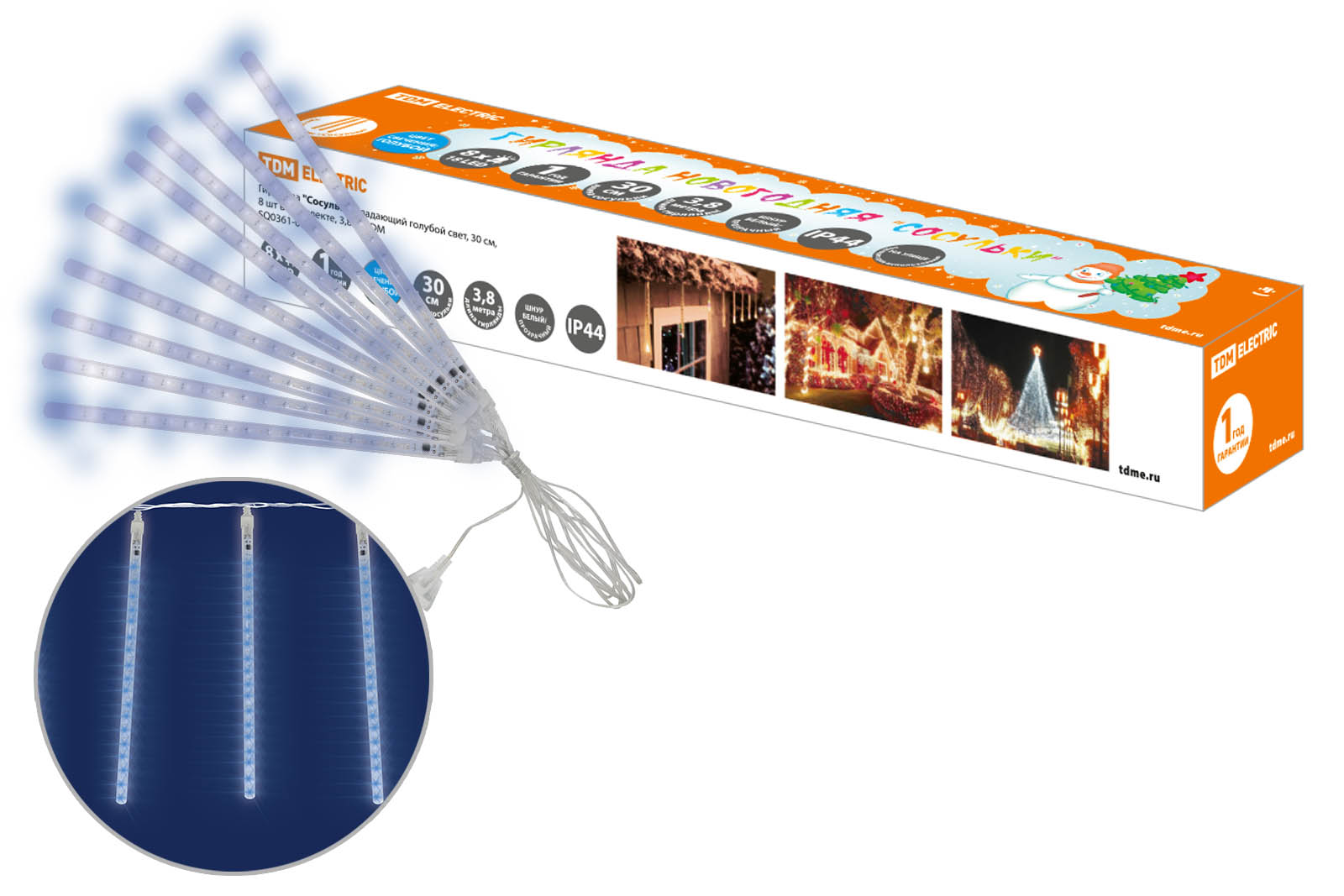 Сосульки TDM 144LED 0.3х3.8м синий 8 подвесов IP44 (40)