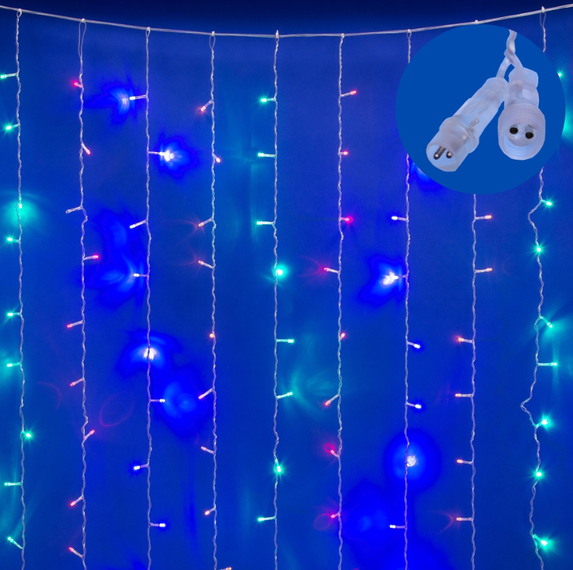 Занавес Uniel ULD-C3020-240 240LED MULTI 3х2м соединяемая провод прозрачный IP44 (12)