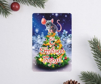 Магнит "С Новым Годом!" мышка на елке 9*6см винил (1/10)