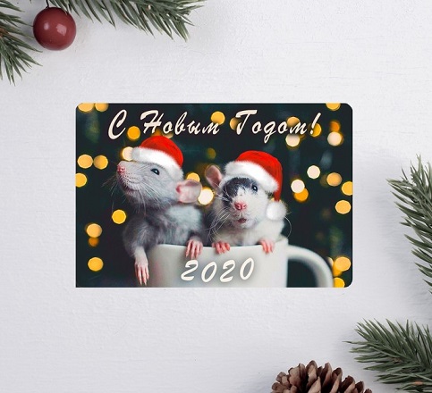 Магнит "С Новым годом! мышки в чашке" 9*6см винил (1/10)