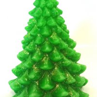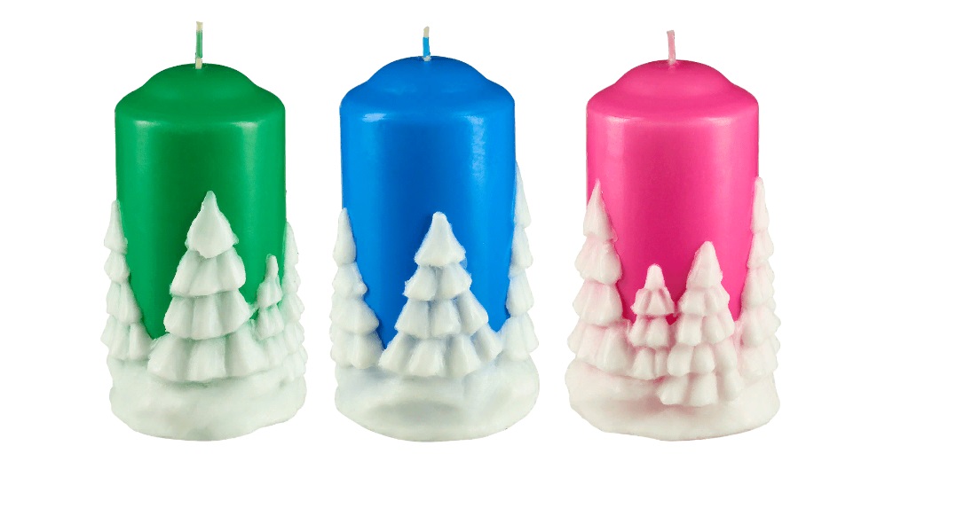Свеча новогодняя столб с Елочным барельефом 12см d56 220г цвета микс (24)