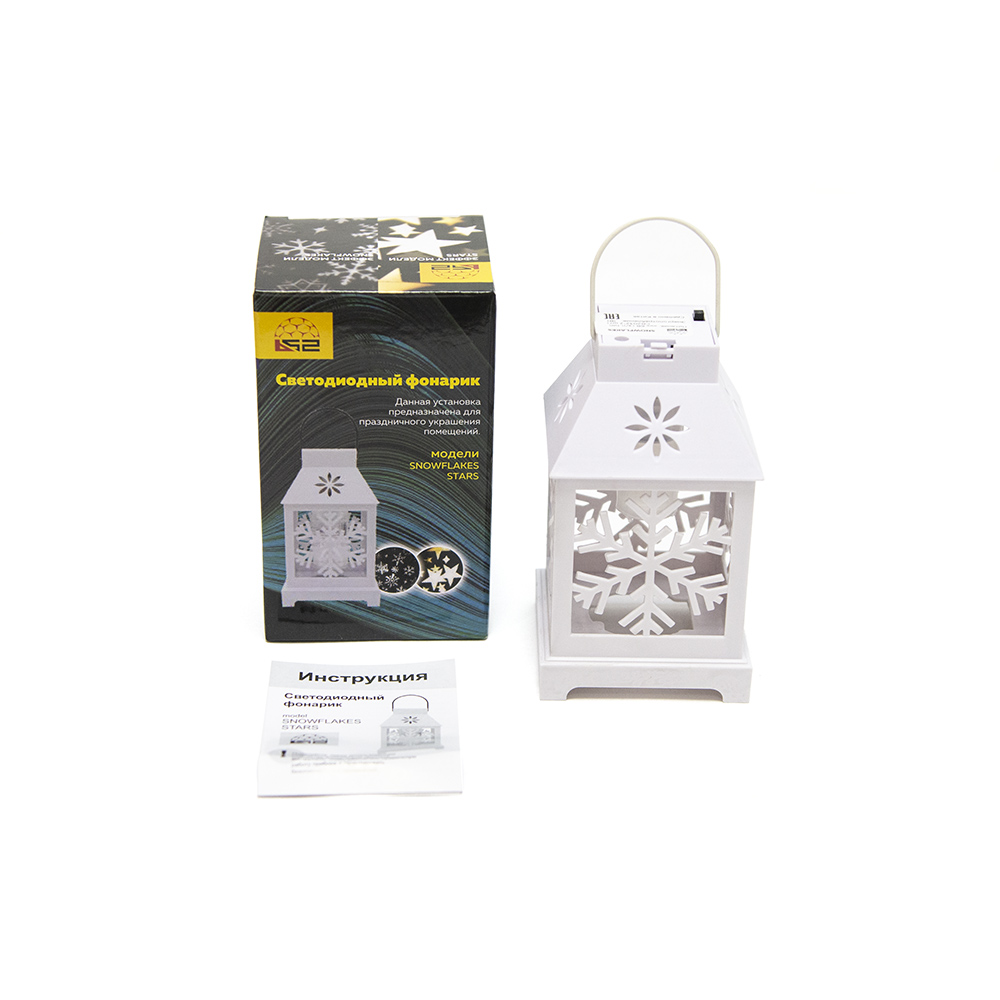 Светодиодный фонарик B52 "SNOWFLAKES" - комнатная светодиодная система в форме фонарика с проекцией снежинок. Излучает холодный белый цвет свечения. Работает в автоматическом режиме (статичный). Рекомендуемое расстояние проекции - до 1м.