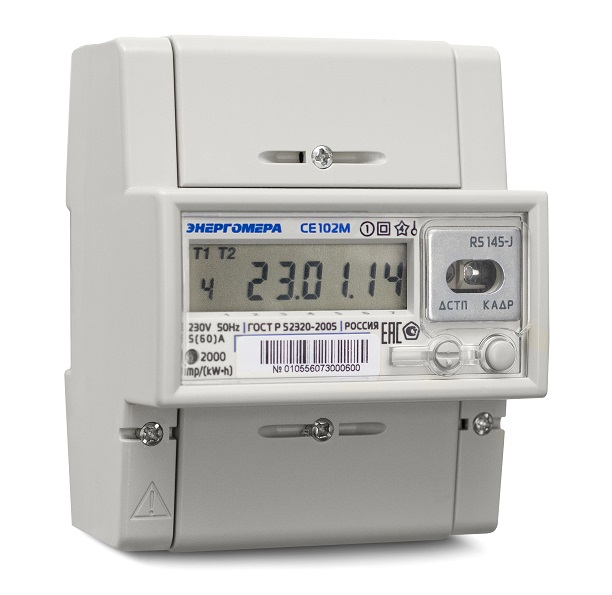 Счётчик электроэнергии 220В многотарифный DIN 5-60А ЖКИ Энергомера СЕ102M R5 145-A (10) 2025