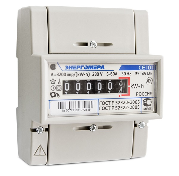 Счётчик электроэнергии 220В однотарифный DIN 5-60А ЭУ Энергомера СЕ101 R5 145 М6 (10) 2026