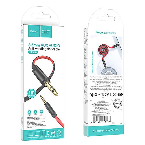 Кабель джек 3.5мм - джек 3.5мм 1м Hoco UPA16 позолоченные контакты красный коробка (1/31/310)