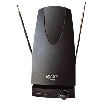 Антенна комнатная активная Эфир SE-220 МВ+ДМВ (усы 0.8м, кабель 1м, регулировка уровня сигнала) черный (1/20)