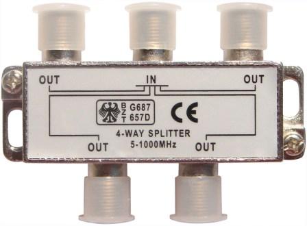 Телевизионный делитель это удобное средство для разделения сигнала на несколько равных частей. Антенные делители, также называемые телевизионные сплиттеры ,часто используются когда требуется подключить один телевизионный кабель, идущий от антенны, сразу к нескольким телевизорам. Особенно это актуально в многокомнатных квартирах или многокомнатных загородных домах. Делитель имеет один вход под F разъем и четыре выхода, также под F разъемы. Сигнал, подающийся на вход делителя, делится на четыре равные части и передается на выходы. Для подключения кабелей используются стандартные F-разъемы. Полоса пропускания делителя от 5 до 1000МГц, эти частоты используются для стандартного эфирного телевидения. Качественно изготовленный ТВ сплиттер REXANT долго и надежно прослужит в составе телевизионной системы, делая удобной эксплуатацию нескольких телевизоров.