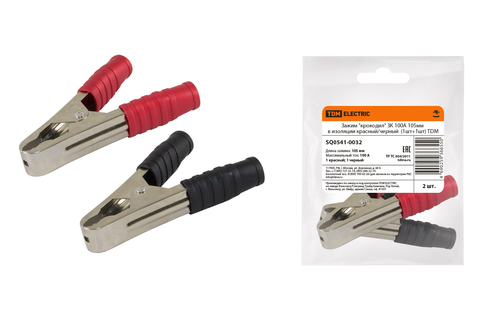 Зажим "крокодил" 100А 105мм 2шт TDM (10/200)