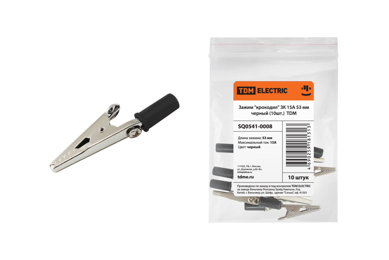 Зажим "крокодил" 15А 53мм черный (10шт/уп) TDM