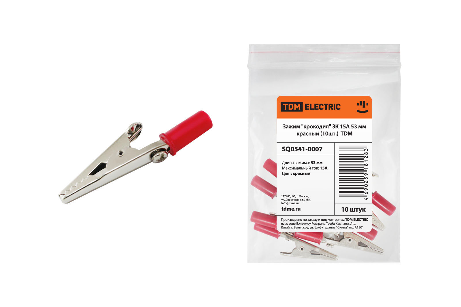 Зажим "крокодил" 15А 53мм красный (10шт/уп) TDM