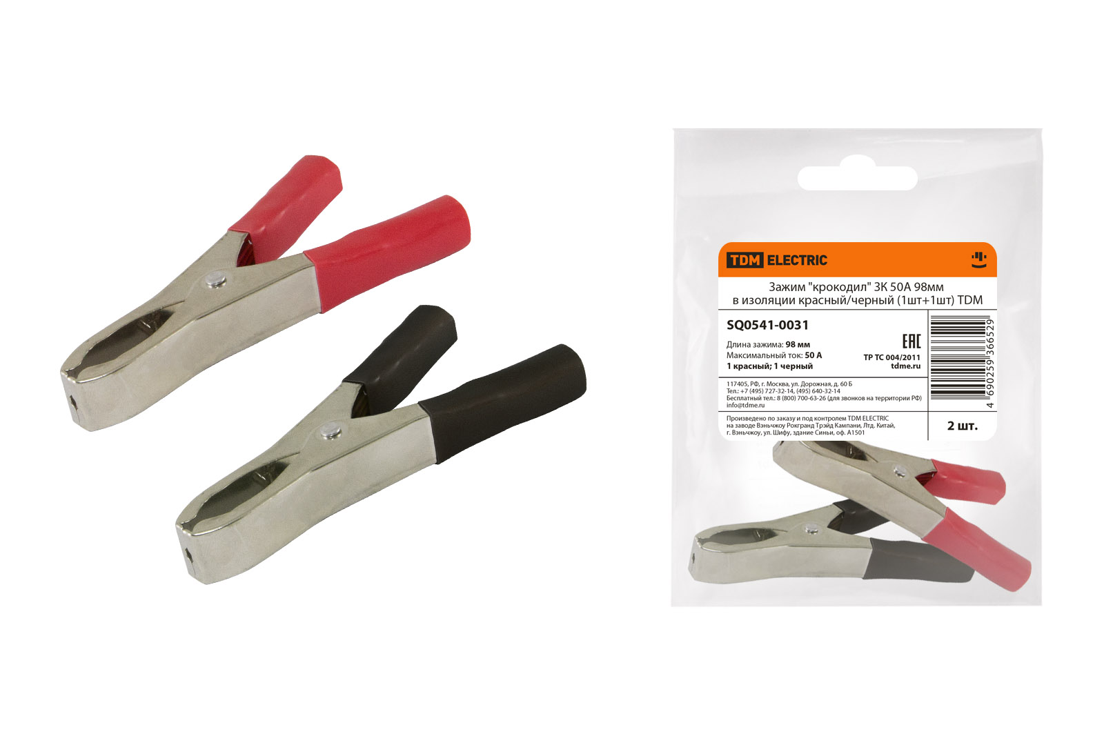 Зажим "крокодил" 50А 98мм (2шт/уп) TDM
