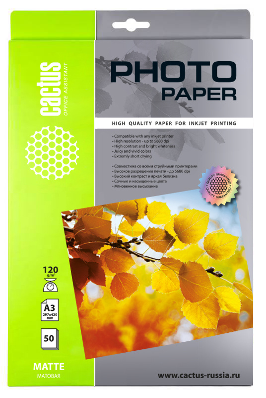 Бумага А3 Cactus 120 г/м2, 50 листов, матовая (1/16)