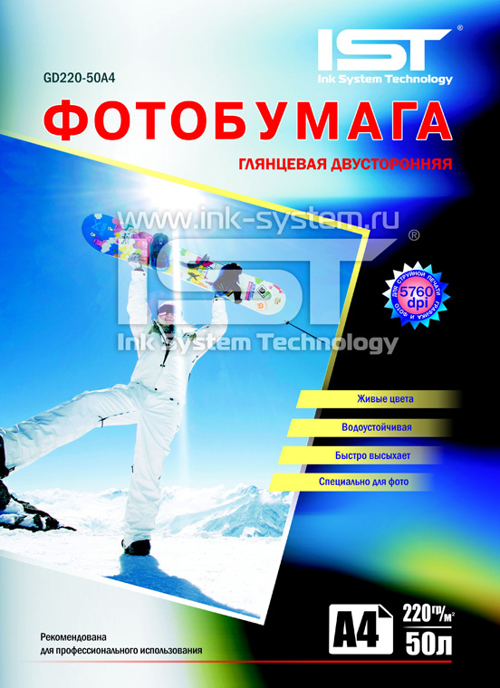 Бумага А4 IST 220 г/м2, глянцевая двусторонняя, 50 листов (1/10)