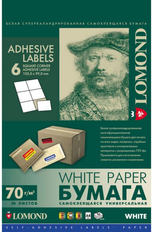 Бумага А4/6 LOMOND 070/50 самоклеящаяся, разделённая на 6 частей (105х99 мм) (1/27)