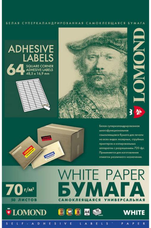 Бумага А4/64 LOMOND 070 м/2, 50 листов, самоклеящаяся, разделённая на 64 части (48,5х16,9 мм) (1/27)